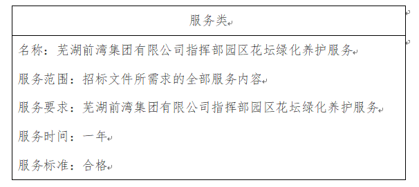 二、項(xiàng)目名稱:蕪湖前灣集團(tuán)有限公司指揮部園區(qū)花壇綠化養(yǎng)護(hù)服務(wù)項(xiàng)目