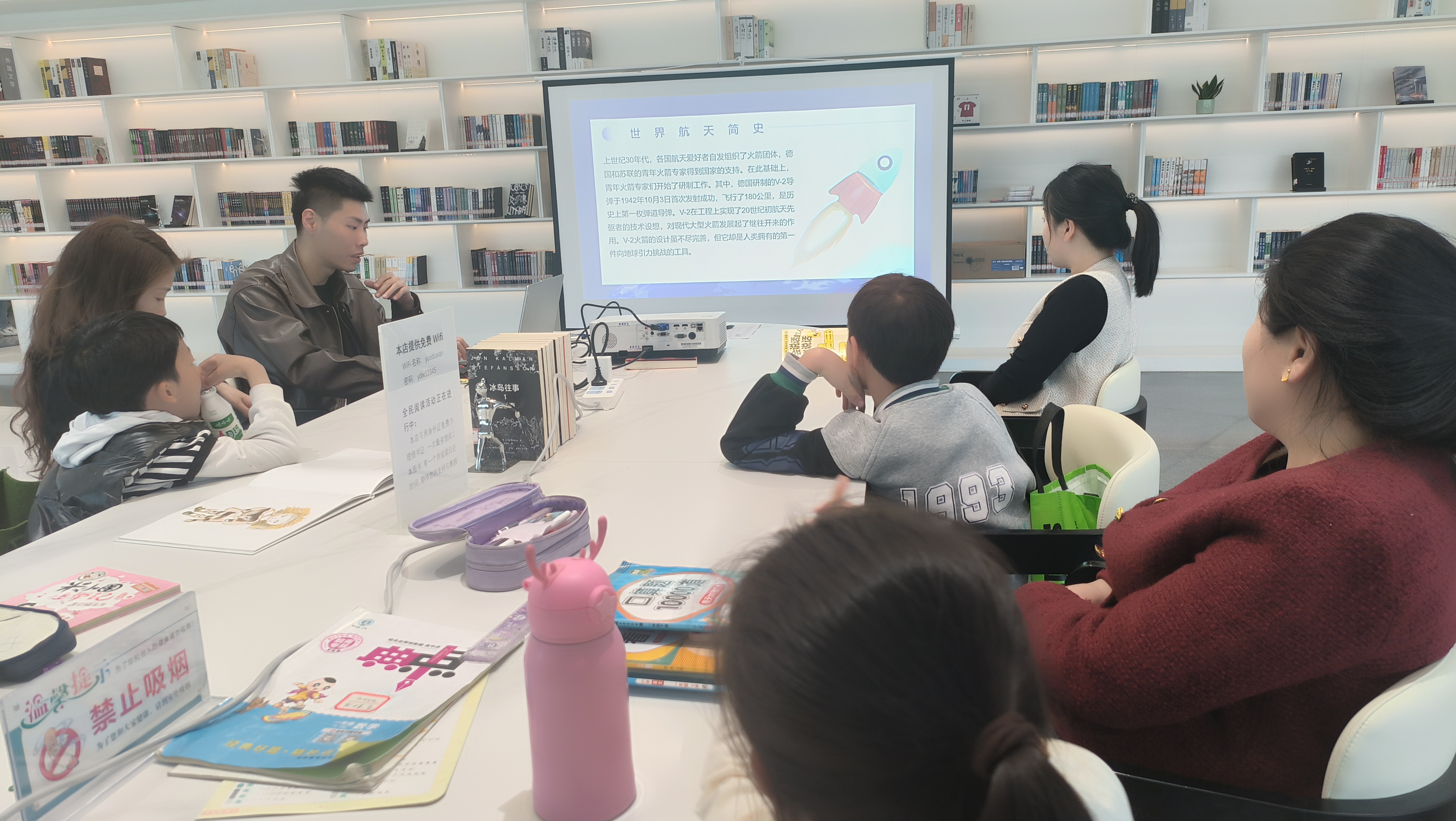 科學精神是中國人民發(fā)展核心素養(yǎng)中的重要組成部分。為大力弘揚航天科學精神,激發(fā)讀者求真創(chuàng)新、理性探究的意志品質(zhì),在“世界航天日”到來之際,蕪湖書房悅讀灣組織開展了“航天創(chuàng)造美好生活”主題活動?;顒又?,工作人員向讀者們詳細講述了世界航天日的由來。從人類對太空的初步向往,到衛(wèi)星、火箭的成功發(fā)射,再到國際間的合作與交流,這段歷史充滿了挑戰(zhàn)與奇跡。讀者們不禁感慨中國航天事業(yè)的發(fā)展艱辛曲折卻生動展現(xiàn)著中國力量!