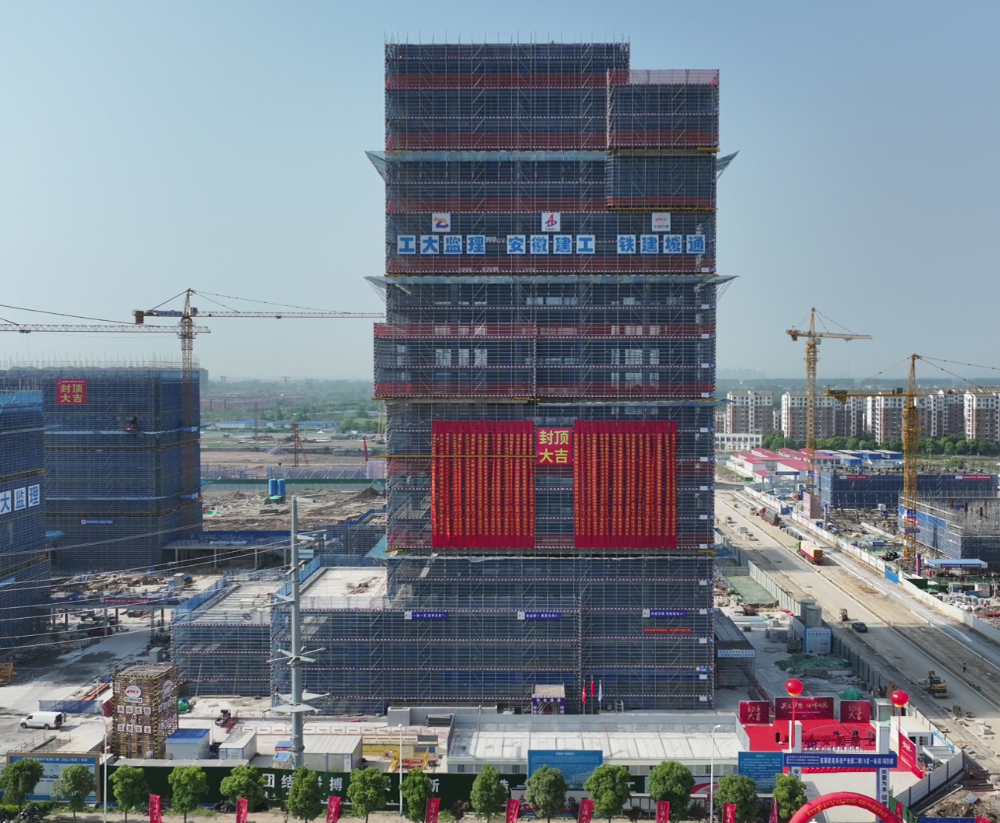 該項目位于蕪湖市江北新區(qū),北鄰長江三橋,總建筑面積49675.08平米,由安徽建工集團股份有限公司、中鐵建城建交通發(fā)展有限公司承建。自開工以來,項目制定了合理有效的進度計劃,精心組織施工,順利實現主體結構封頂。