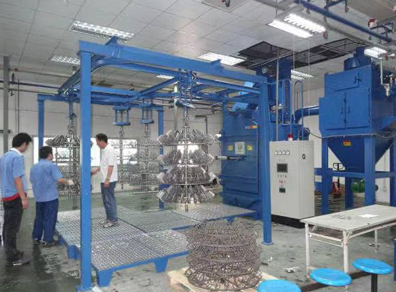 吊鉤式拋丸機(jī)處置效果好、消費(fèi)率高、投資較低、污染少、勞動(dòng)強(qiáng)度低、易完成機(jī)械化,適用于大批量消費(fèi)進(jìn)步工作效率。但拋射方向不能恣意改動(dòng)靈敏性差;并且設(shè)備復(fù)雜,易損件多特別是葉片等零件磨損快,維修費(fèi)用高;但是它能使工件外表到達(dá)一定的外表質(zhì)量請(qǐng)求得到了普遍的應(yīng)用。