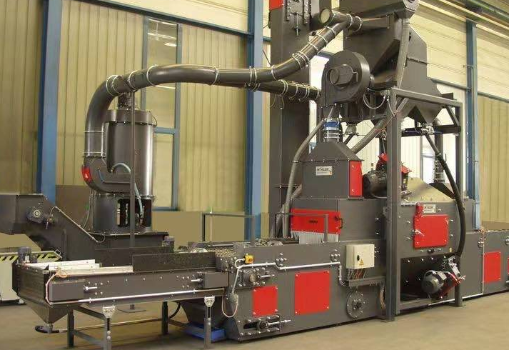 落入鋼材上面的彈丸和銹塵經(jīng)吹掃裝置吹掃,撒落下去的丸塵混合物由回收螺旋運(yùn)送到室體漏斗、縱植向螺旋運(yùn)送機(jī)離散于降職機(jī)下部,再降職到機(jī)器上部的接治器里,接治后的純真彈丸落入接治器料斗中內(nèi),供拋丸循環(huán)使用。