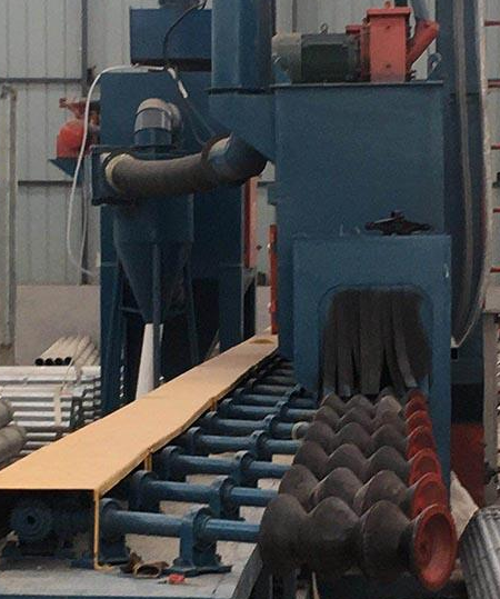 鋼管拋丸機(jī)適用于成批鋼管在焊接或涂裝前對其外表面連續(xù)進(jìn)行拋丸處理,徹底進(jìn)行除銹,除氧化皮和其他污垢物,是管道清理方面的專家。經(jīng)過拋丸處理,使之獲得一定粗糙度的光潔表面,增加噴涂附著力,提高表面質(zhì)量與防腐效果。其卓越的清理性能讓過去勞動力密集的噴砂和電線刷的方法成為過時(shí)。同時(shí),鋼管拋丸機(jī)能將生產(chǎn)成本將至低,且大大提高產(chǎn)出。