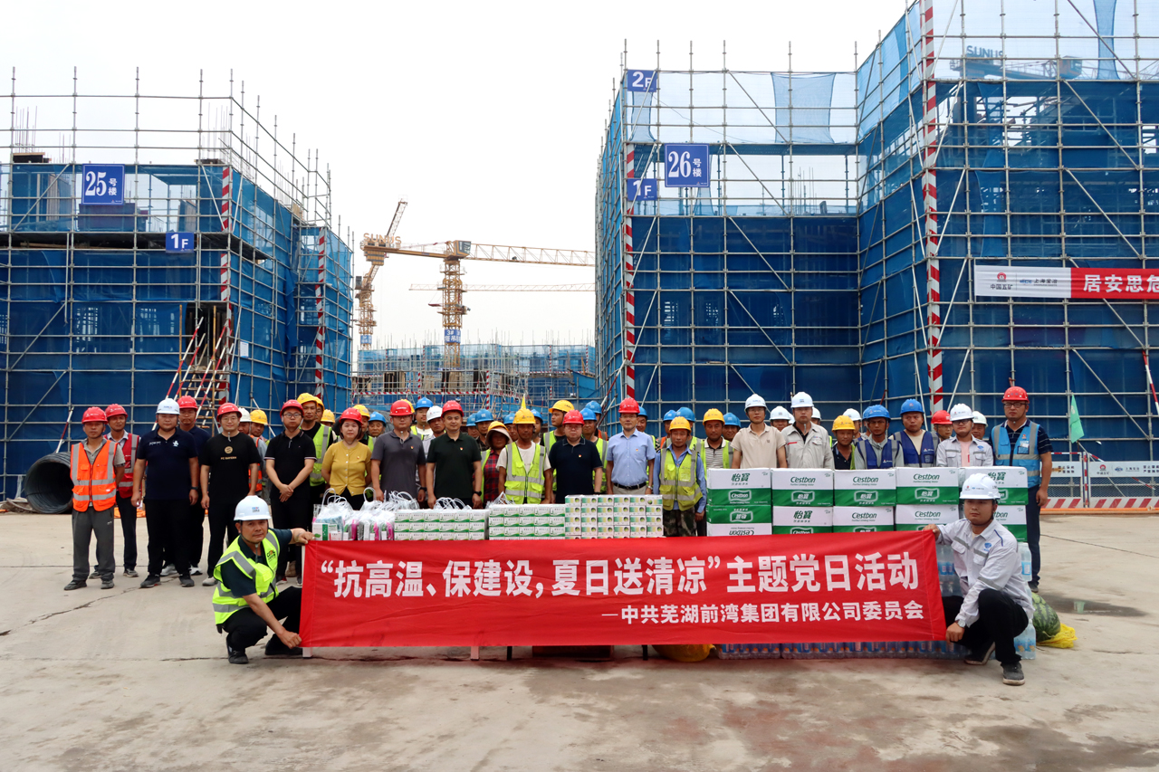 為切實(shí)做好在建項(xiàng)目工地夏季防暑降溫工作,7月10日,前灣集團(tuán)黨委開展“抗高溫、保建設(shè) 夏日送清涼”主題黨日活動(dòng),為高溫天氣下堅(jiān)守一線的建設(shè)者們送去夏日清涼和暖心問候。