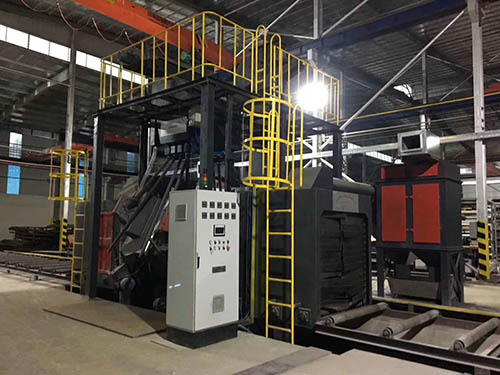 拋丸機(jī)清理室為大容腔板式箱形組焊結(jié)構(gòu),室體內(nèi)壁襯有ZGMn13耐磨防護(hù)板,清理作業(yè)在密封的容腔內(nèi)進(jìn)行。